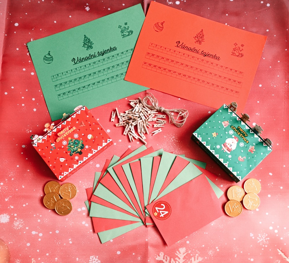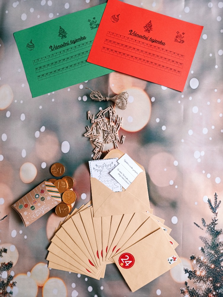 Když děti správně odpoví/splní úkol, najdou v obálce také písmenka, která doplní do tajenky. Takhle tajenku doplňují až do Štědrého dne. V tajence je ukryté místo, kam maminka/tatínek/babička… schovali malý poklad.